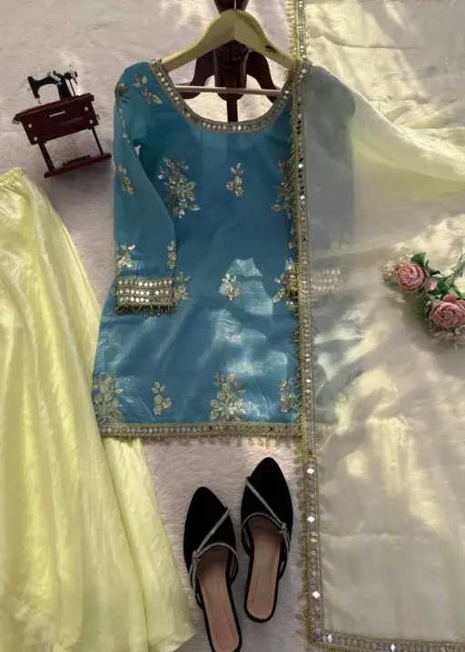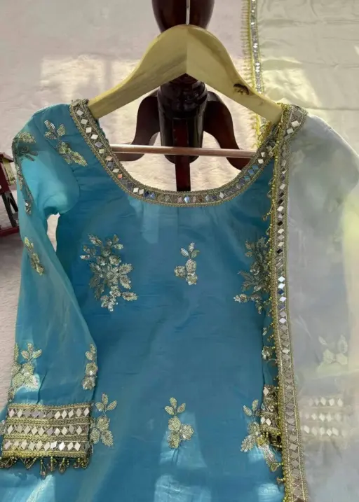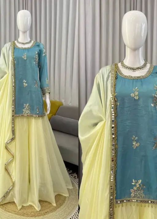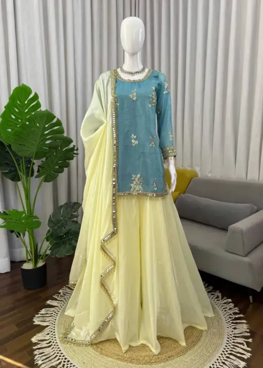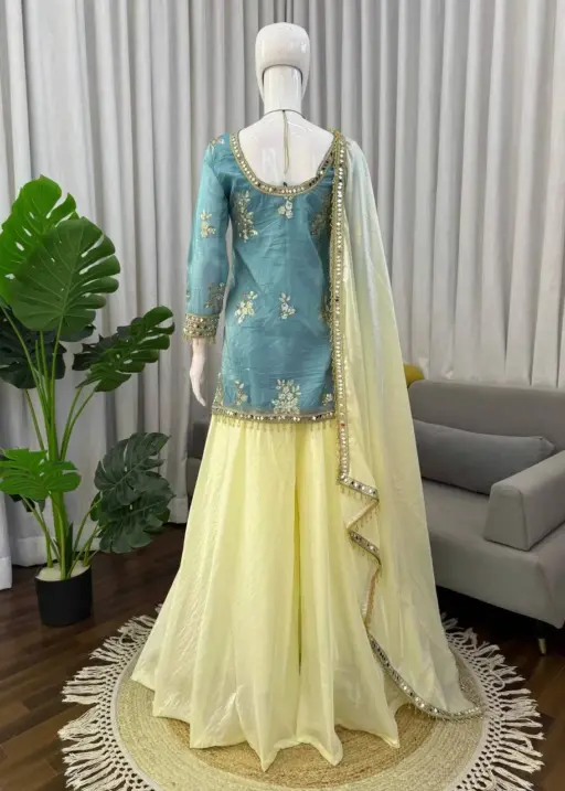 Sky Blue Short Shirt with Plazzo Set | Eid Wear Suits