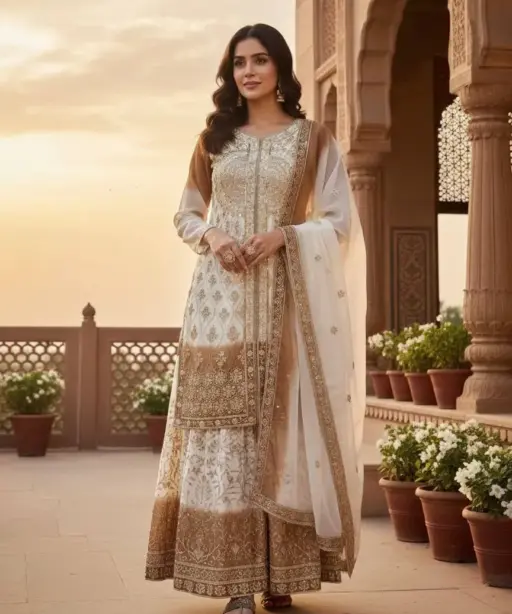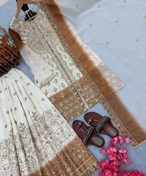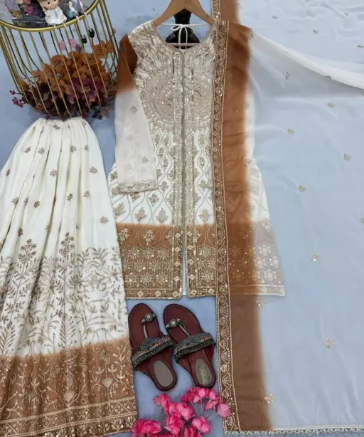 | Bottom | Pur Heavy Dual Tone Padding Star Georgette with Heavy Embroidery 5 mm Sequence Work with Elastic |