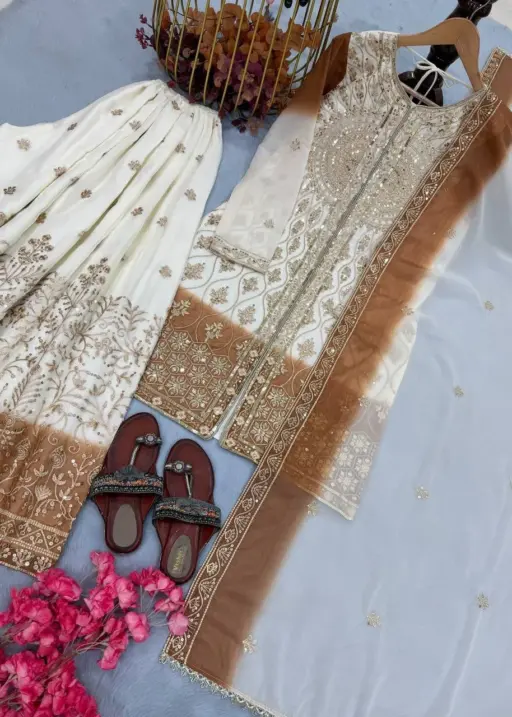 | Dupatta | Pur Heavy Dual Tone Padding Star Georgette with Embroidery 5 mm Sequence Work 2.20 Mtr |
