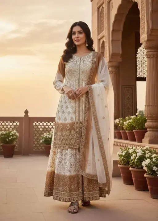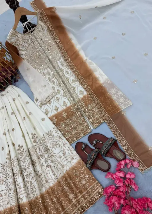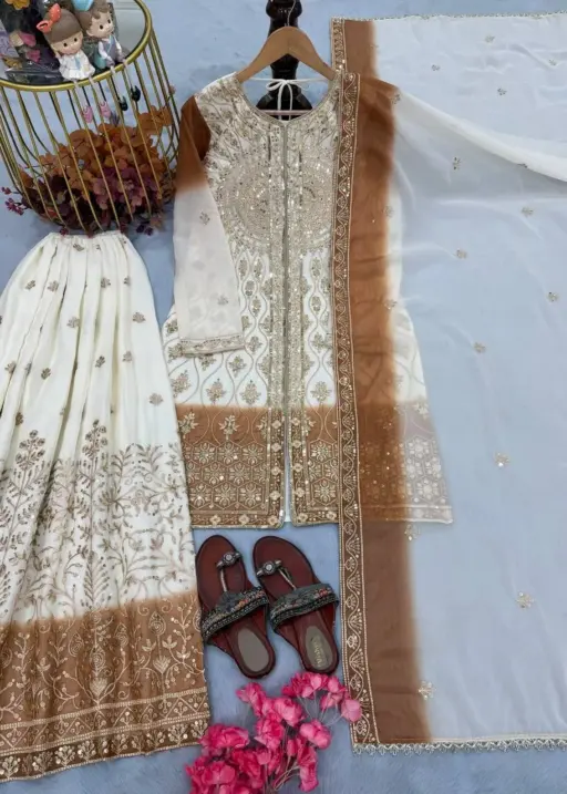 | Bottom | Pur Heavy Dual Tone Padding Star Georgette with Heavy Embroidery 5 mm Sequence Work with Elastic |