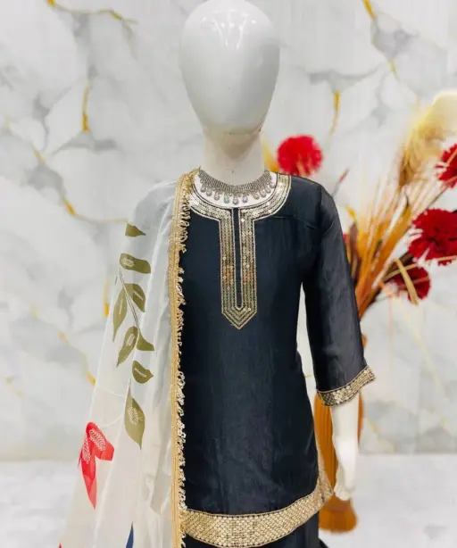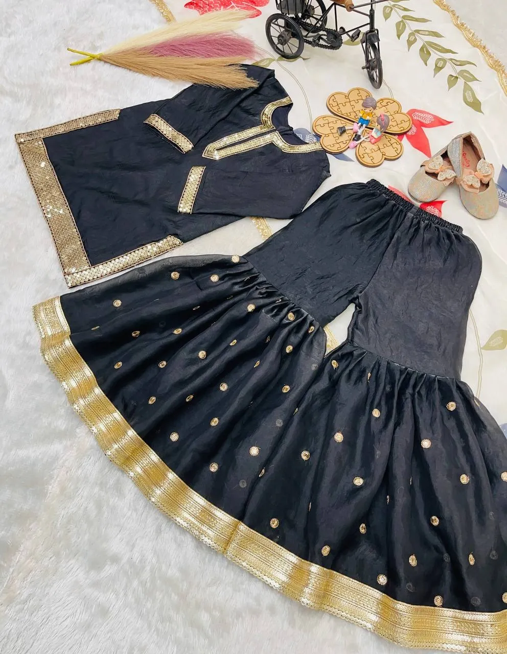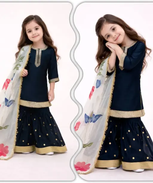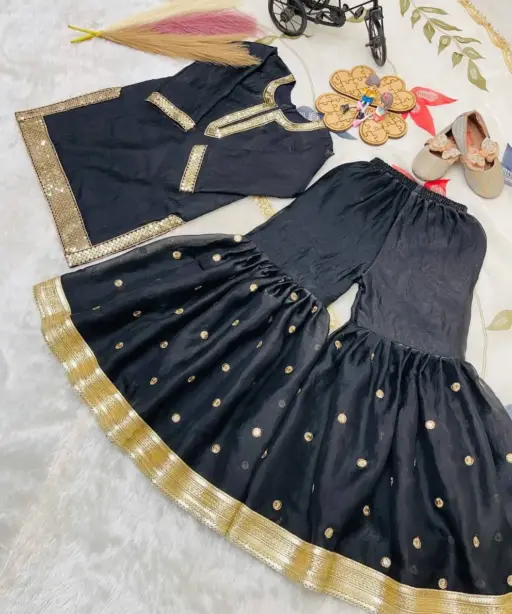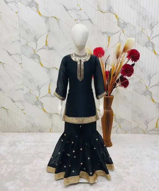 Small Girls Black Sharara Suit for Eid