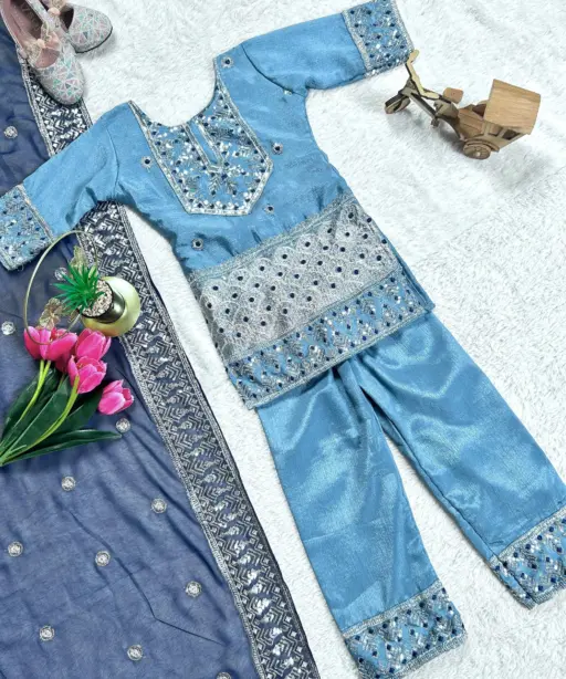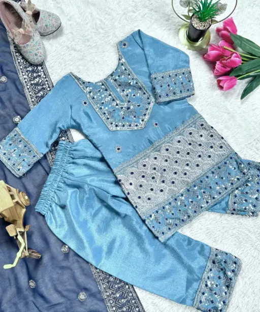Heavy Chinon Silk with Sequins Embroidery Work, Fully Stitched, Inner Micro Cotton | |