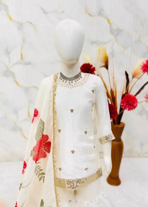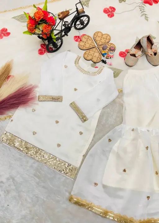 Small Girls White Sharara Suit for Eid