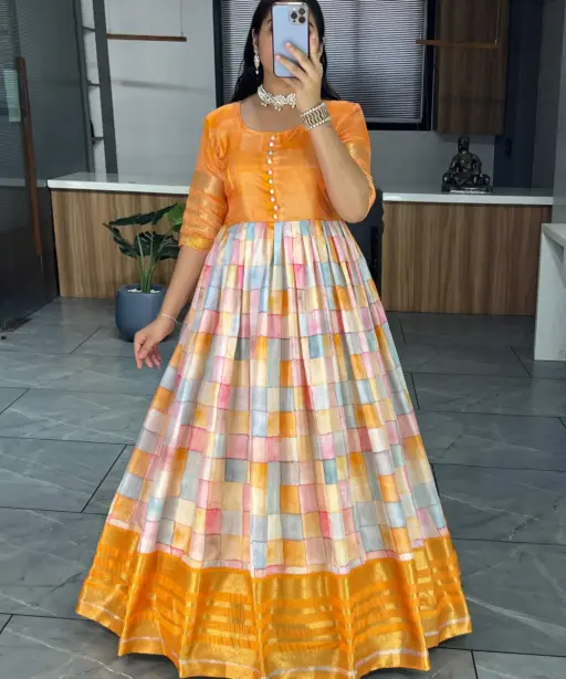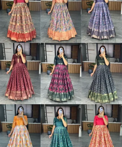 Soft Silk Printed Readymade Gown