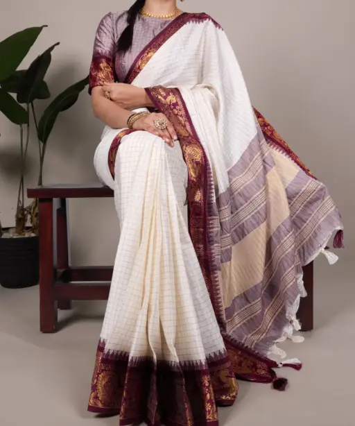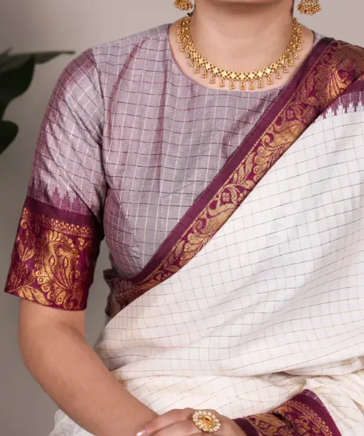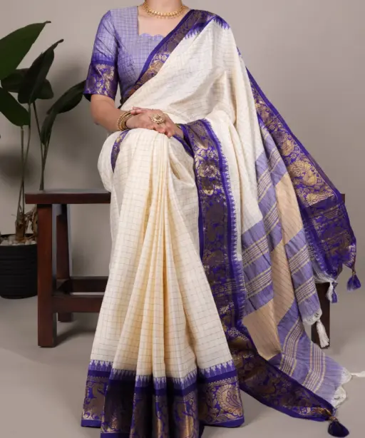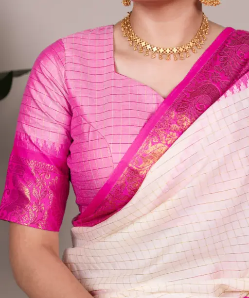 | Saree | Poly Cotton with Chex and Zari Weaving Work |