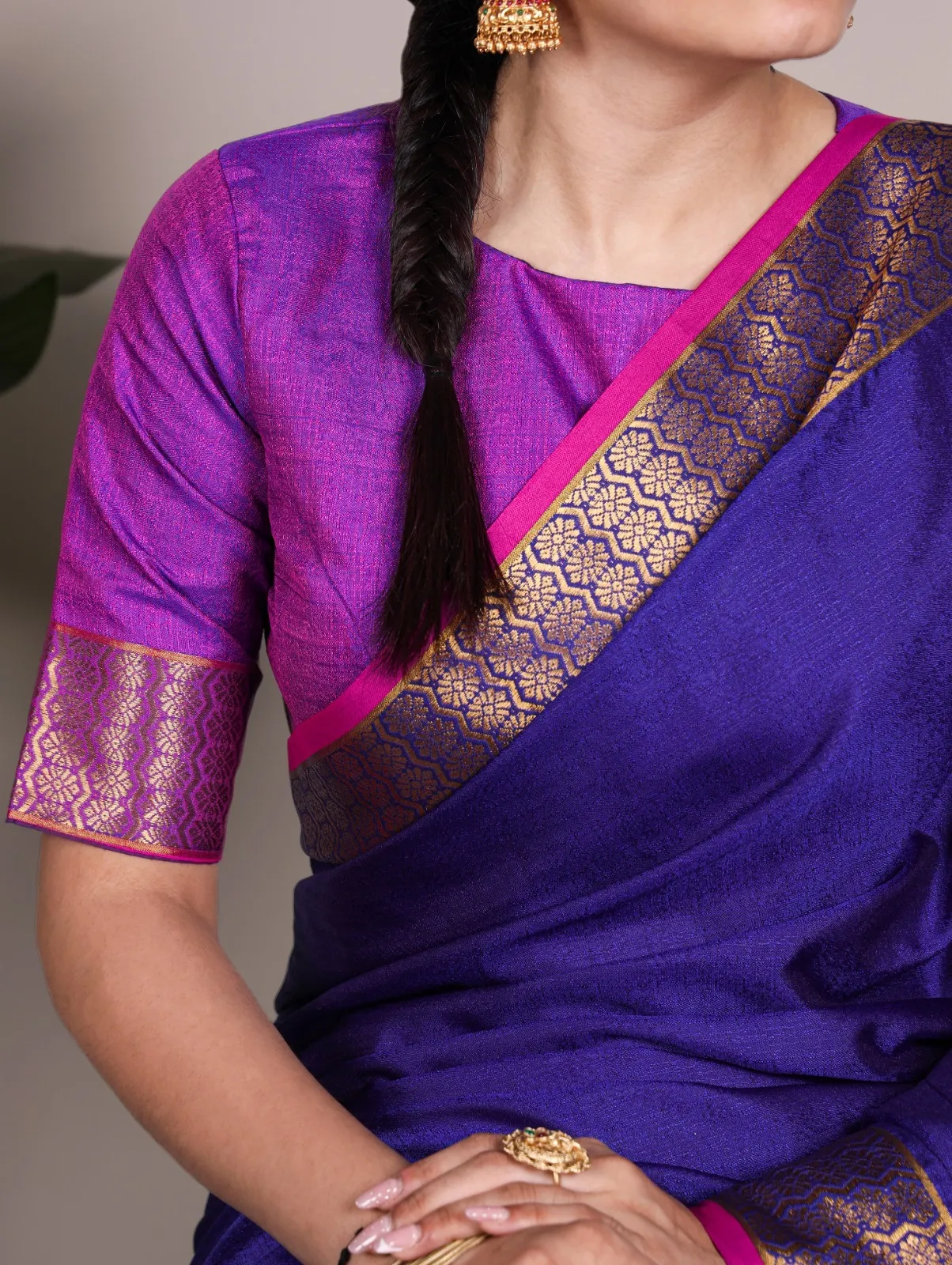South Special Zari Border Purple Saree