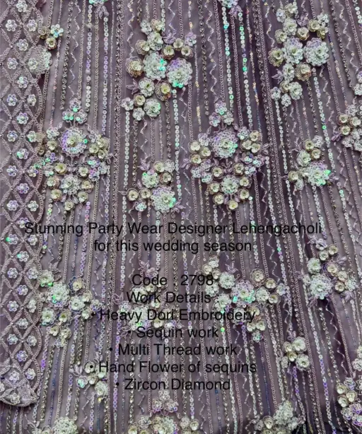 Work Heavy Dori Embroidery, Sequin Work, Multi-Thread Work, Hand Flower of Sequins, Zircon Diamond Stitching Standard Cancan and Canvas Attached Size Free Size Up to 42