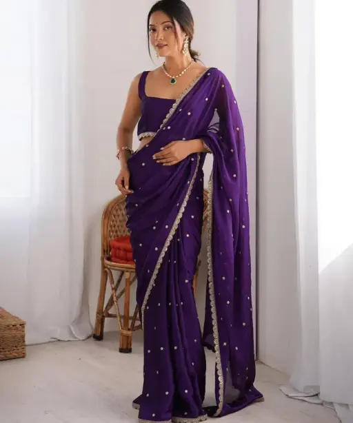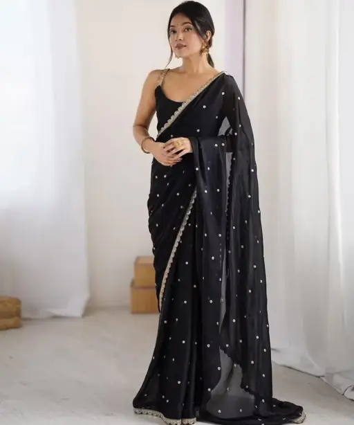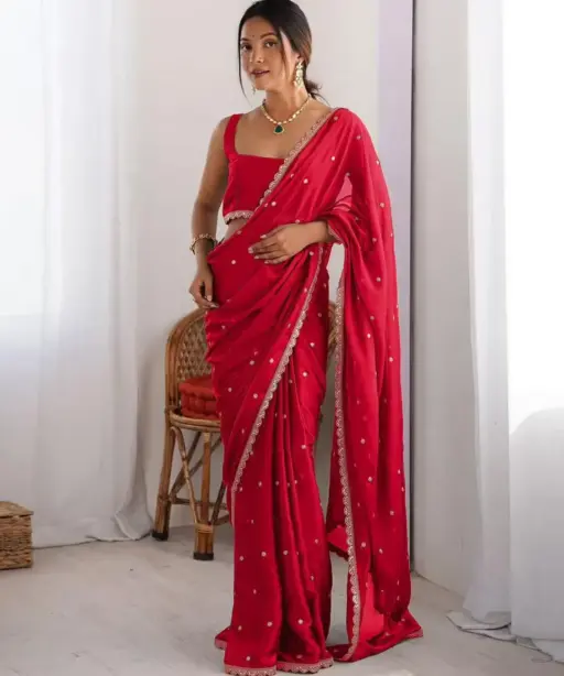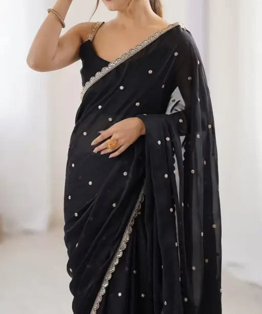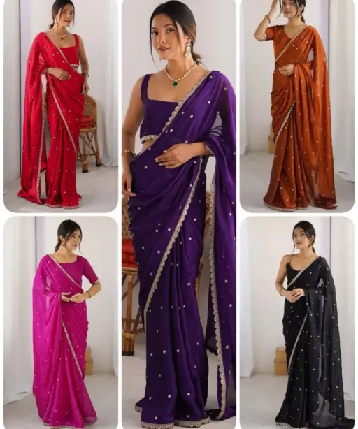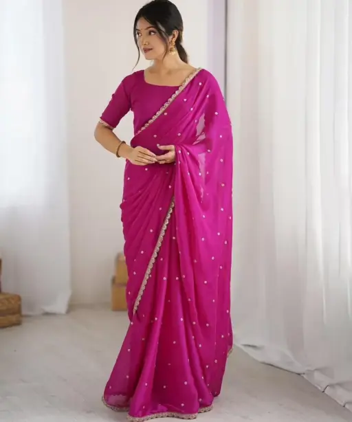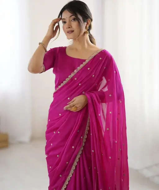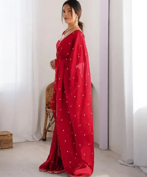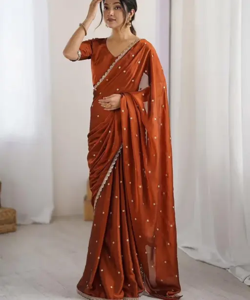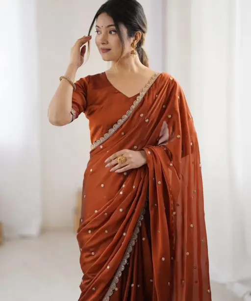 | Saree | Rangoli Silk With Butti Embroidery and Both Sequence Work 5.5 mtr Length |