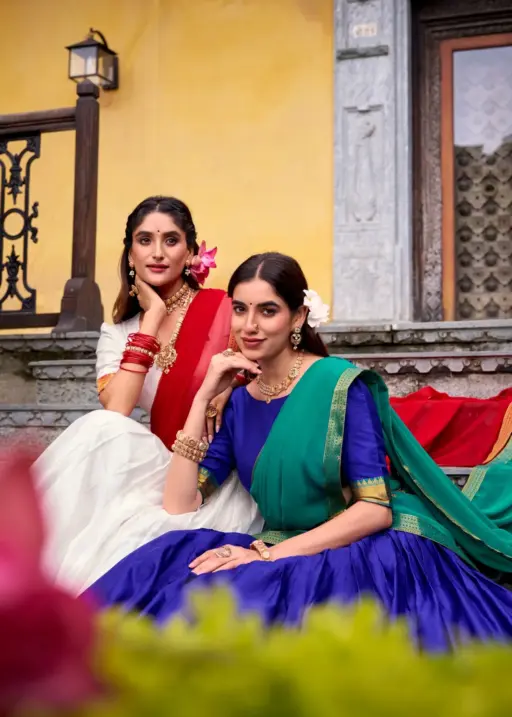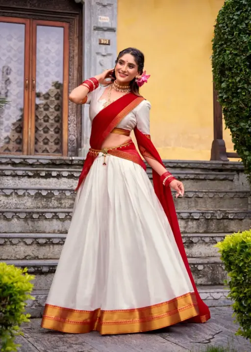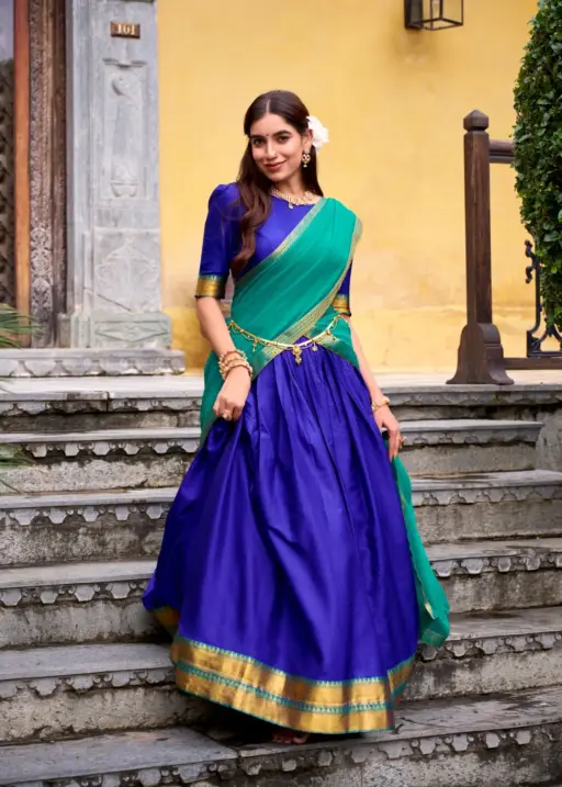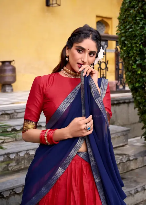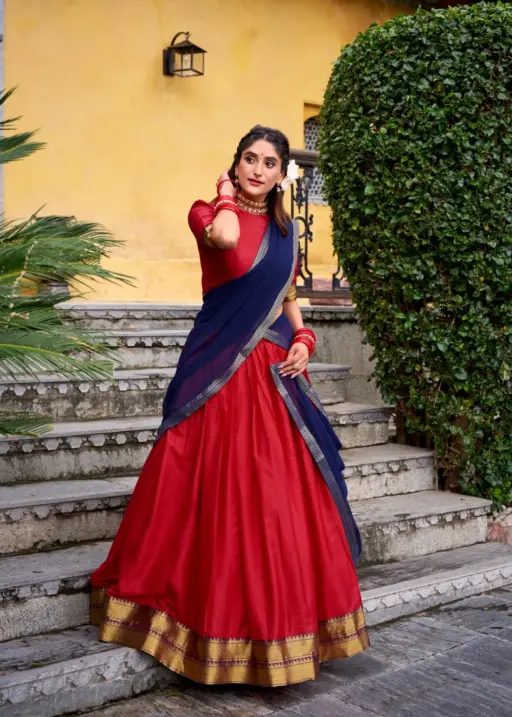 Stylish Plain with Jacquard Border half Saree