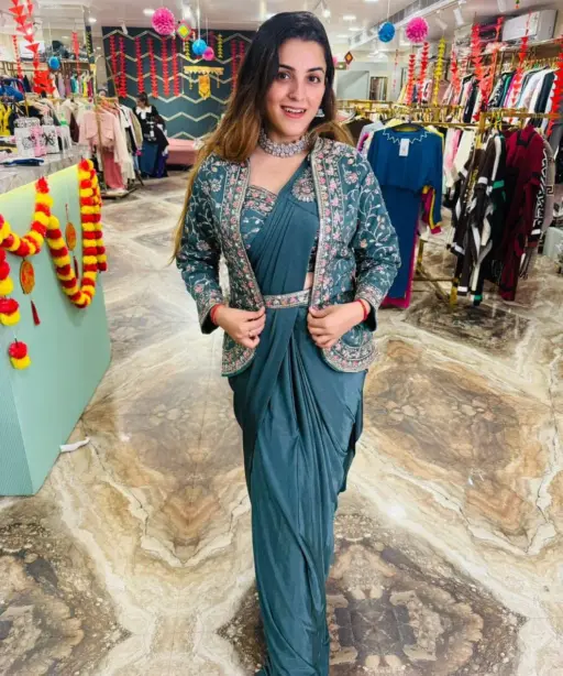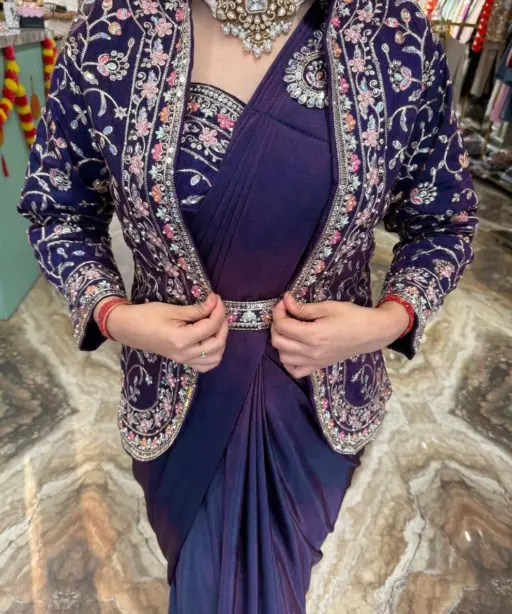 Superhit Trending Indo-Western Ready-to-Wear Saree with Fully Embroidered Koti Ethnic Saree With Blouse And Koti