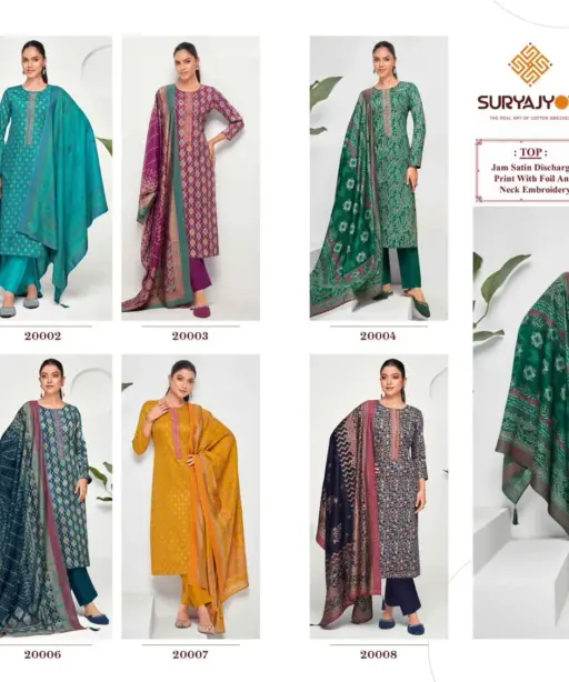 Suryajyoti Kalki Vol 20 Jaam Satin Neck Embroidery Ethnic Suit Wholesaler