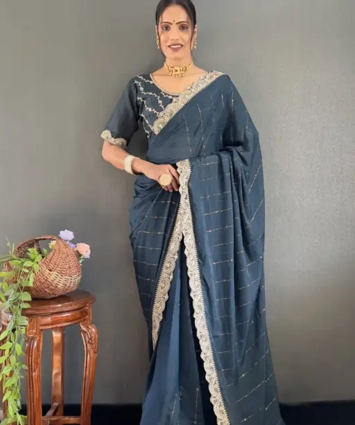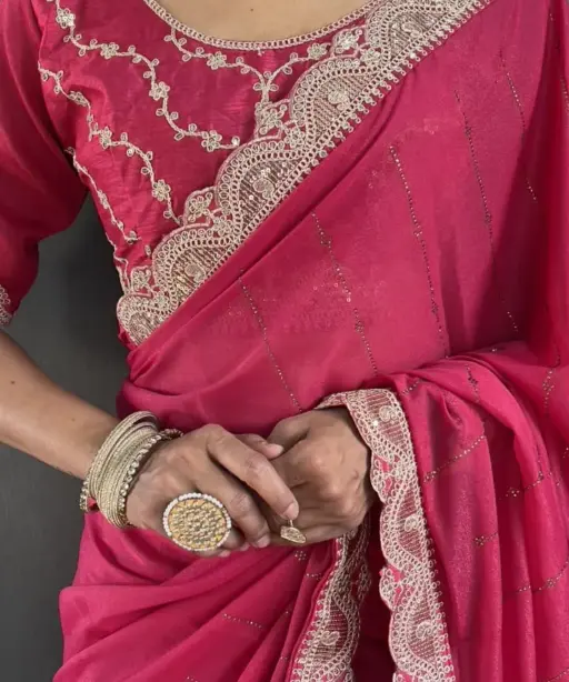 | Saree Fabric | Star Georgette Silk Work Heavy Lace Work & Swarovski Work Saree Size Waist size available for 28 to 44 |