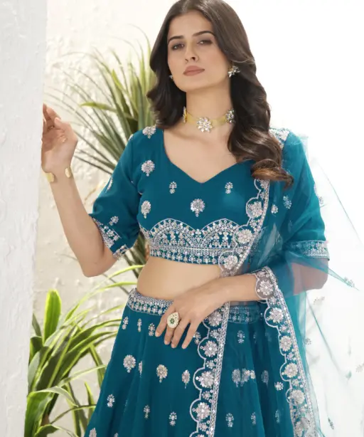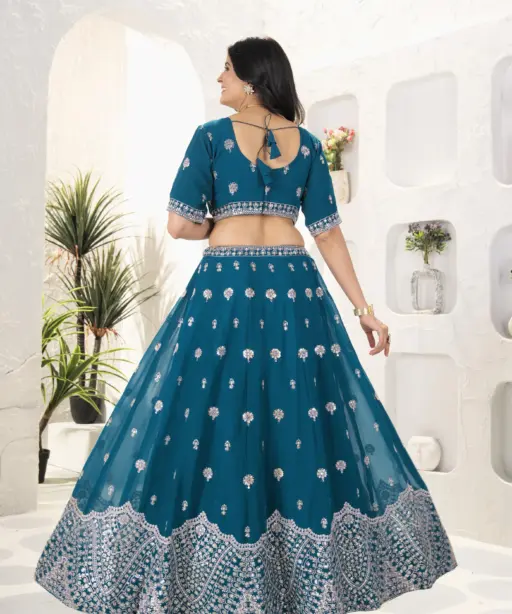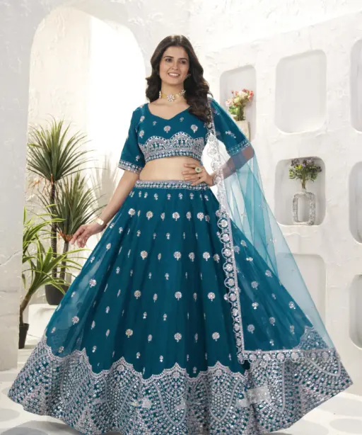 | Lehenga | Faux Georgette with Sequins & Embroidery Work, Semi-Stitched, Waist up to 42”, Length 42”, Flair 4 Meter, Inner: Micro Cotton with Cancan & Canvas |