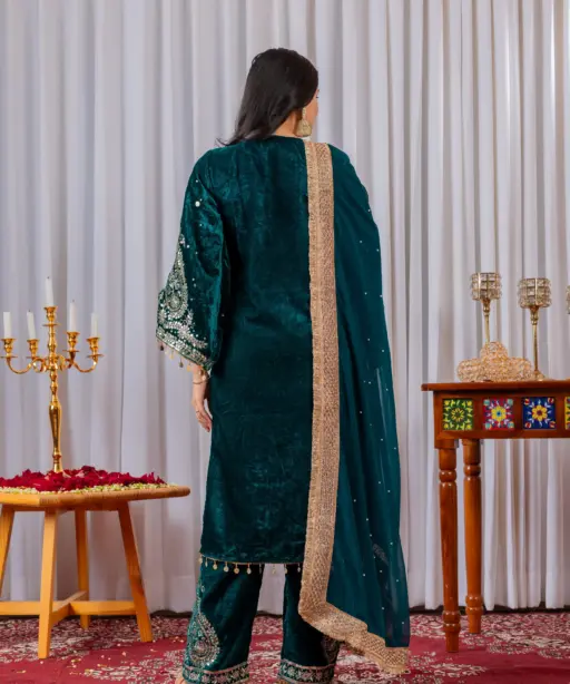 | Bottom | Heavy Pure Viscose Velvet With Embroidery 5mm Sequence Work & Fancy Coin Latkan |