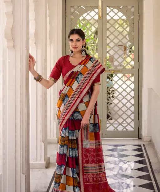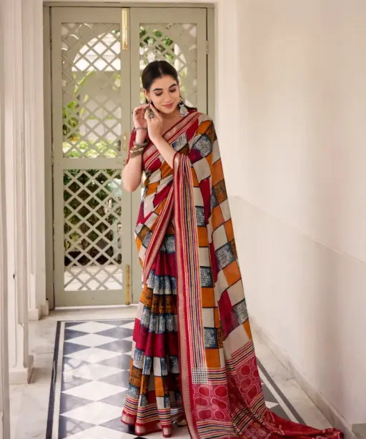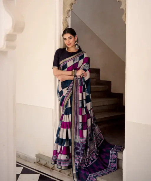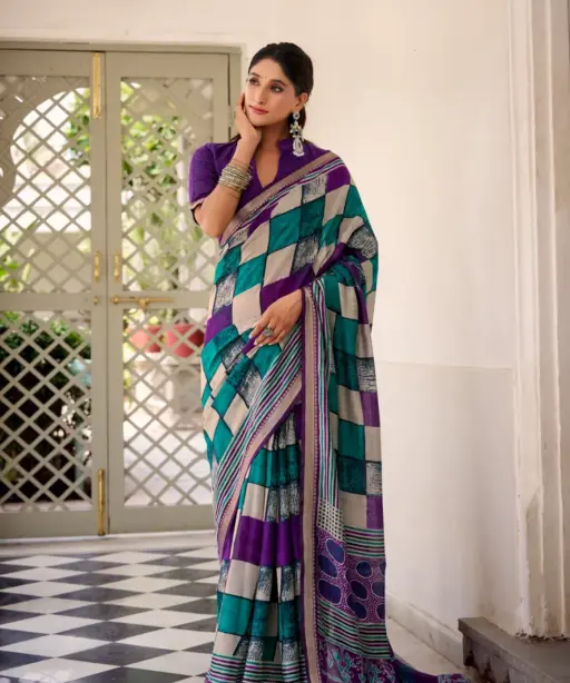 | Saree | Polyester Viscose Chanderi with Printed Temple Border (5.5 Meter) |