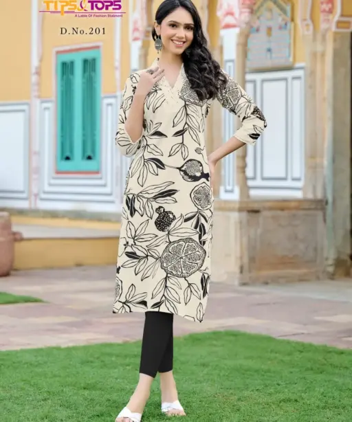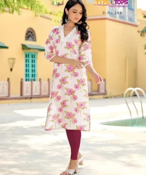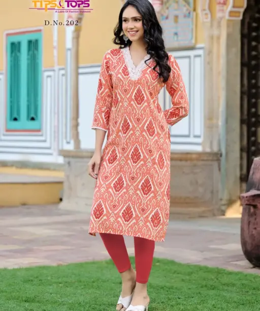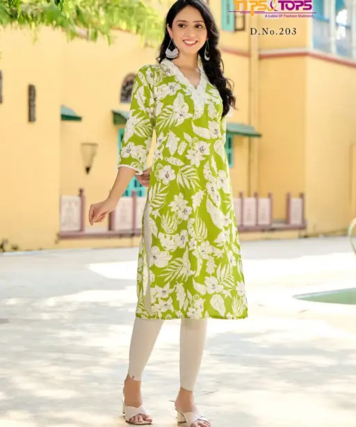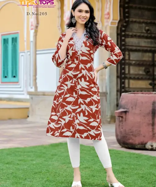 Tips Tops Viana Vol 02 Heavy Rayon Kurti With V Neck Design