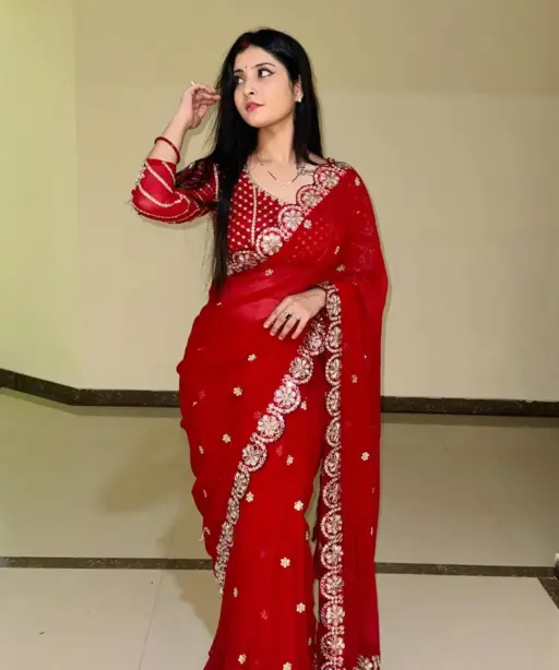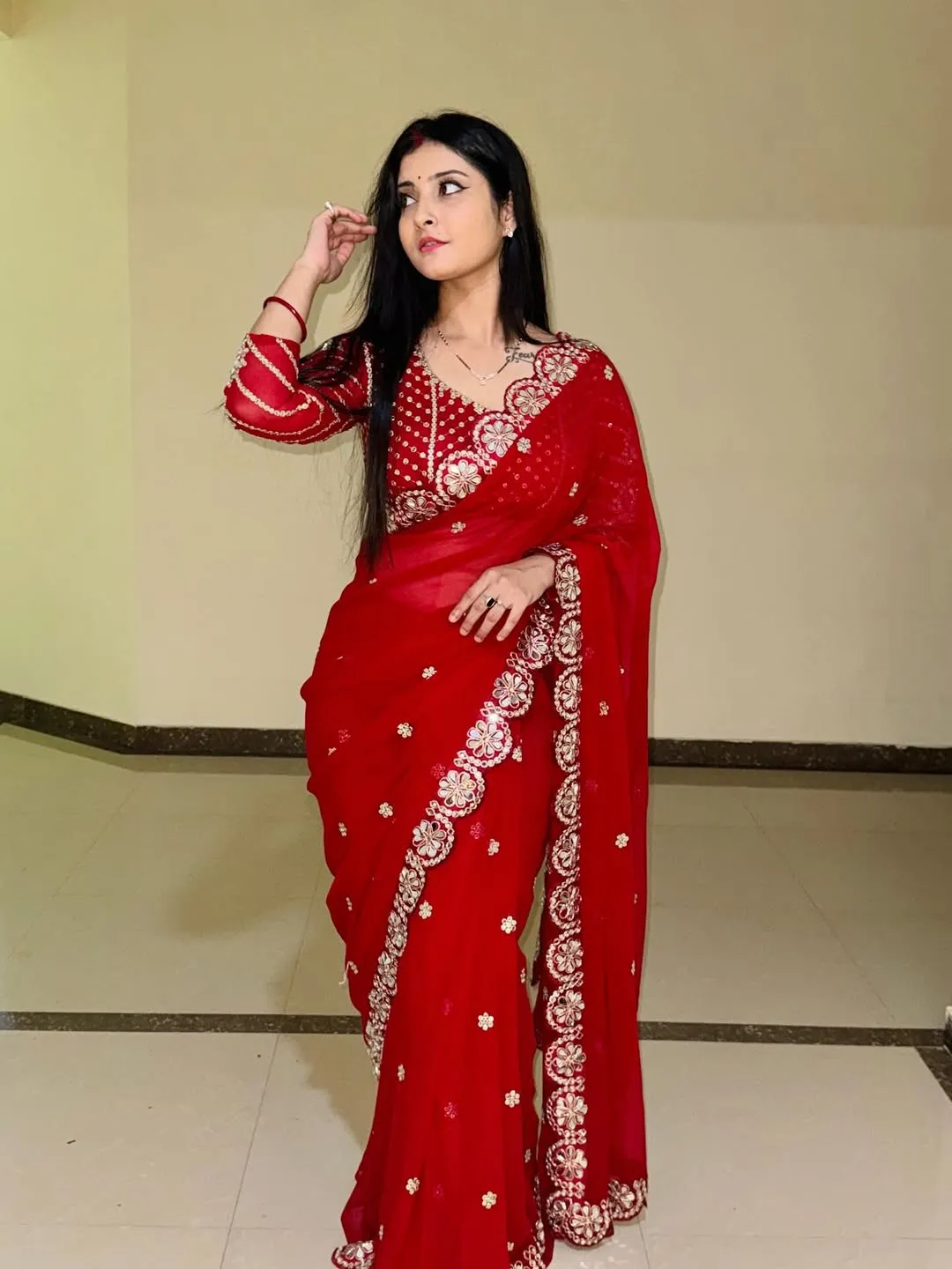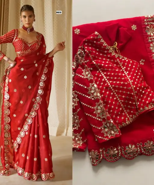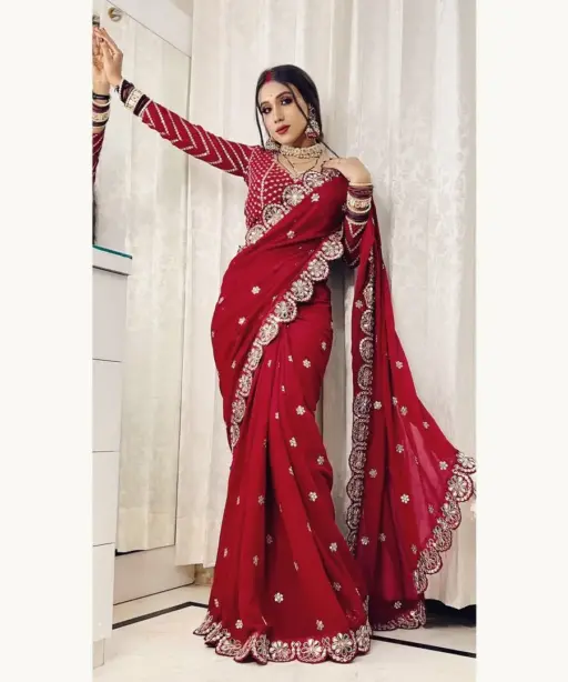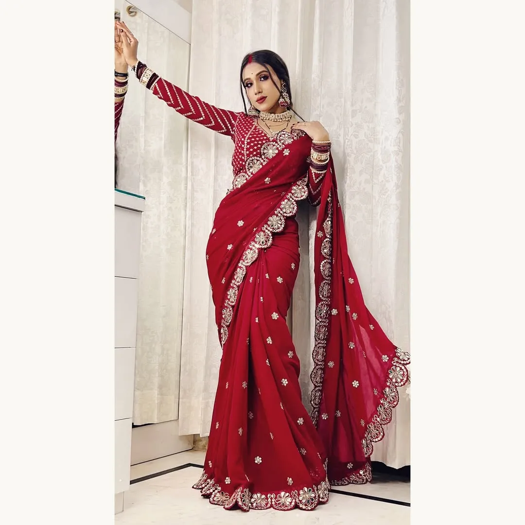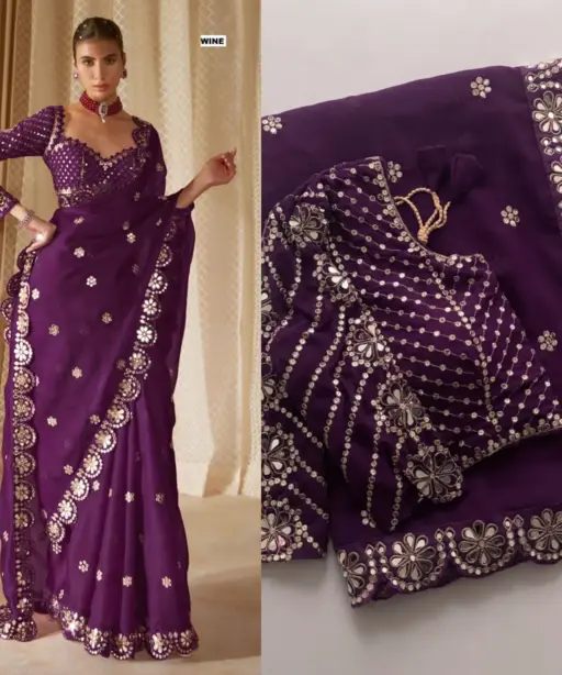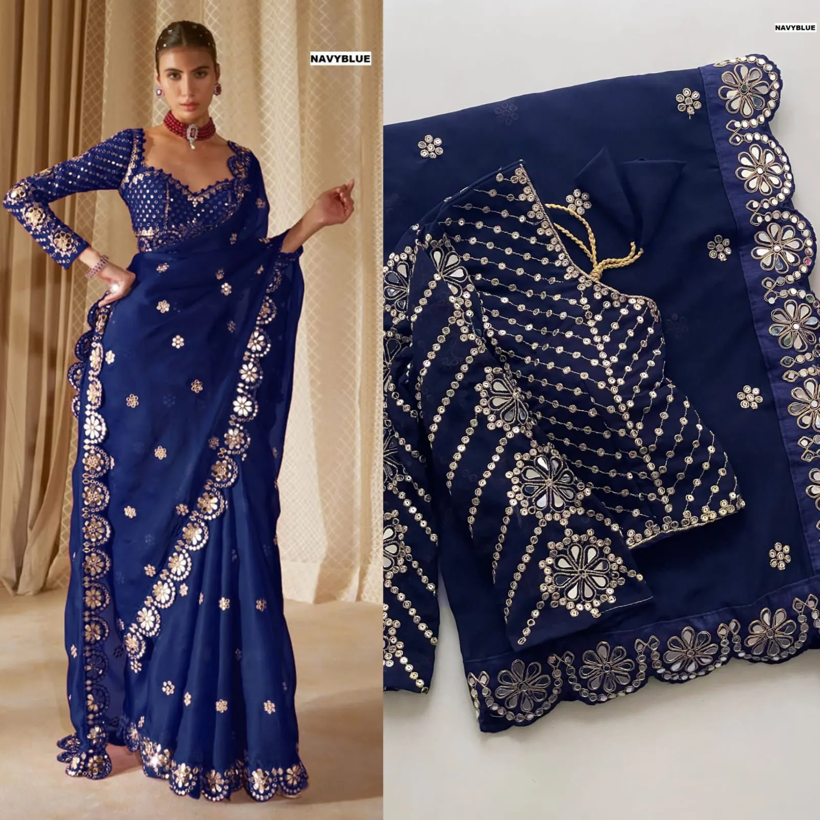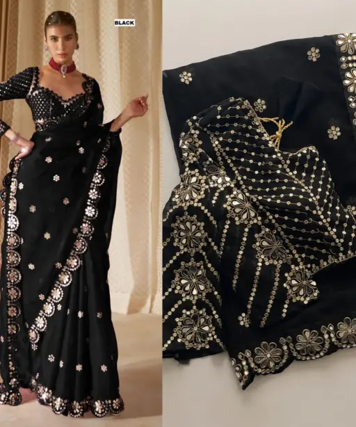 | Saree | Soft Georgette Silk with Embroidery, Multi & Sequence Work with Real Mirror Work |