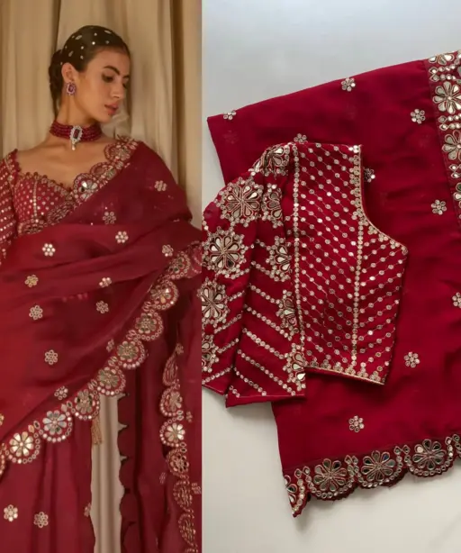 | Blouse | Fully Stitched Embroidery, Multi & Sequence Work with Real Mirror Work |