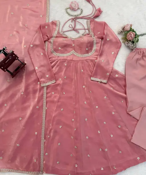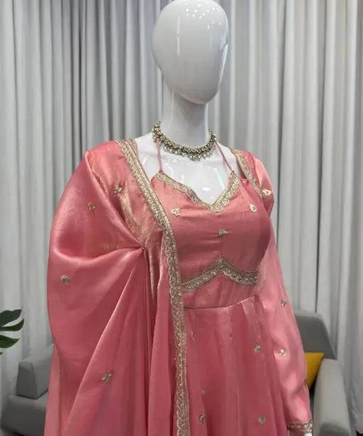 | Top | Fendy Silk with Thread & Sequence Work Lining Soft Micro Cotton Length 52 inch, Flair 3.5 meter |