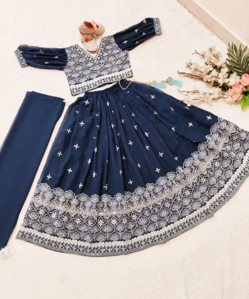 | Lehenga | Faux Georgette with Micro-Cotton Inner, Embroidered Sequences & Fancy Latkan Dorre |