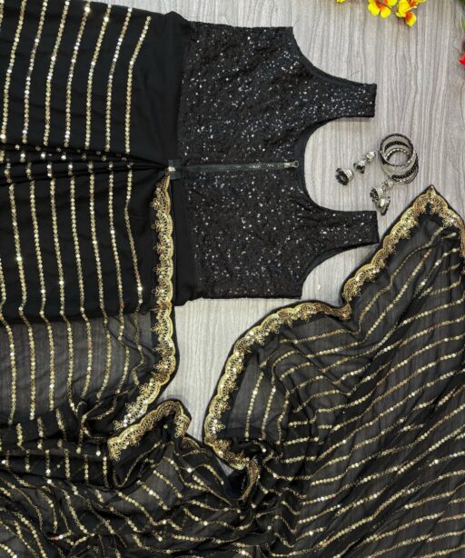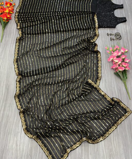 | Saree | Premium Georgette Embellished With Beautiful Embroidery,Sequins Work With Silk Inner ( 30 Work Lines) With Georgette Blouse Embellished With Beautiful Sequins Work With Plane Fabric Of Sleeves Attached Inside |