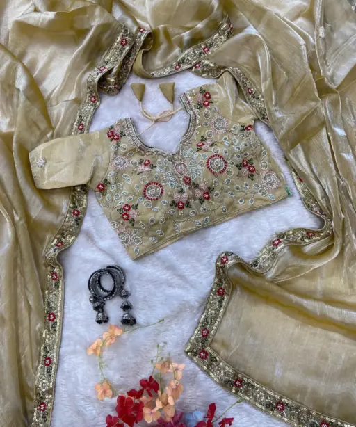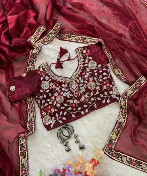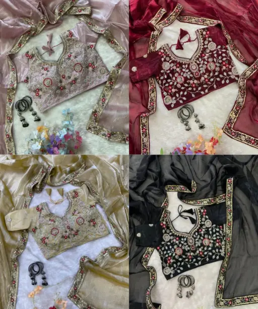 | Blouse Work | Beautiful Handwork with Front Side Work and Sleeves Work (Unstitched) |