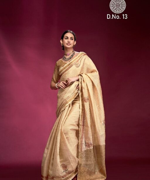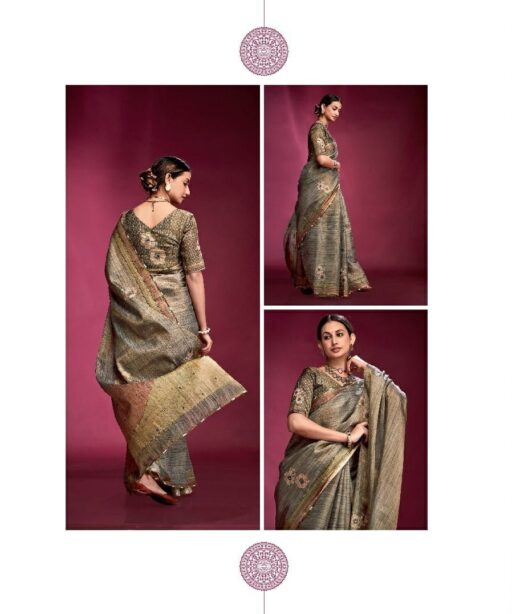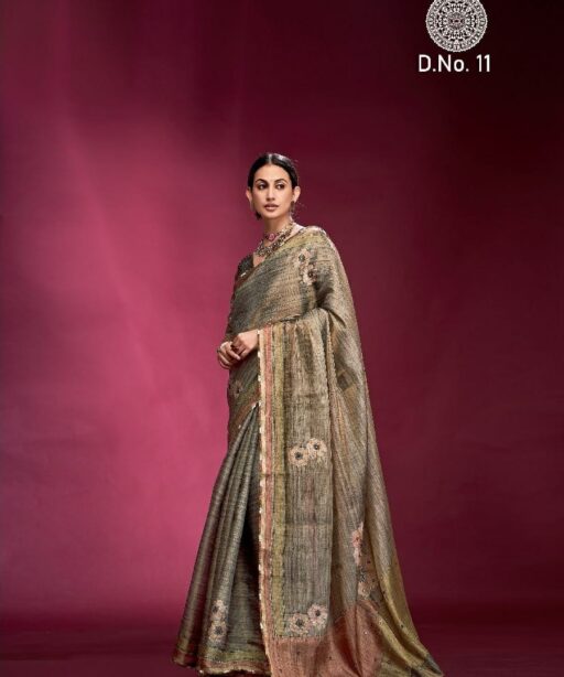 Tusser Silk Handwork Ethnic Saree Kala Jamun Dazzling