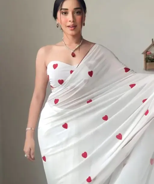 Valentine’s Perfect Gift Soft Georgette Saree With Heart Shape Embroidery