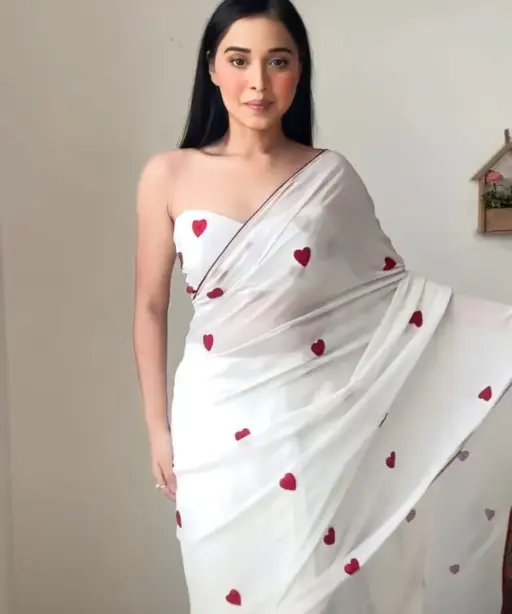 Valentine’s Perfect Gift Soft Georgette Saree With Heart Shape Embroidery
