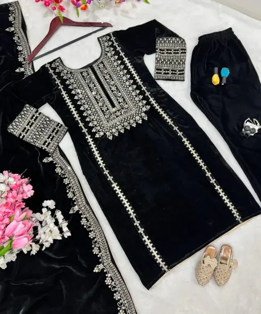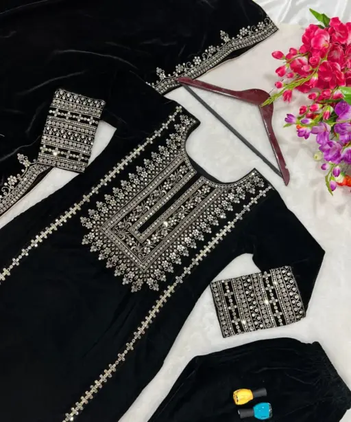 | Bottom | Viscose Velvet with Embroidery Sequence Work (Fully Stitched) |