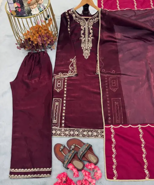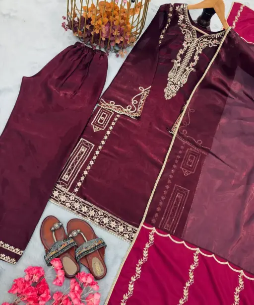 TopPur jc Silk with Embroidery 5 mm Sequence Work with Fancy Sleeves 44-45 Inch Length