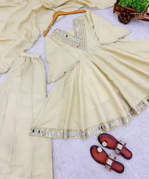 | Bottom | Sharara Plazzo Cosmos Gold Jari Silk with Full Flair (Length: 40-41 inches) |