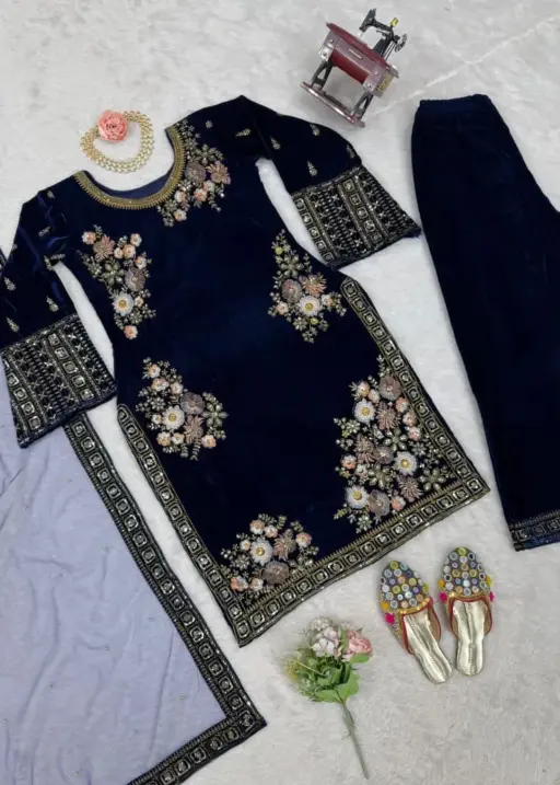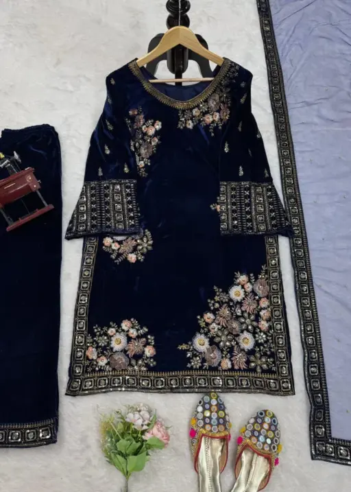 | Top | Heavy viscose velvet with inner, thread and sequence work |