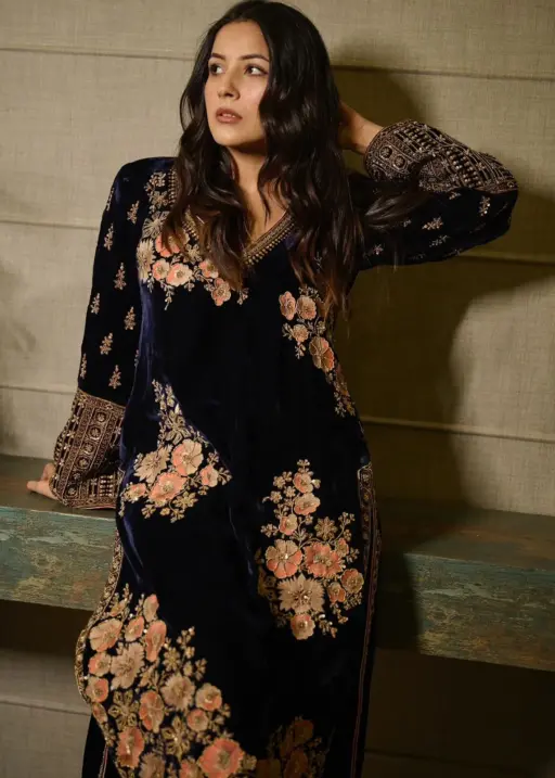 Viscose Velvet Royal Blue Suit Wore By Shehnaaz Gill Trending Velvet Suit