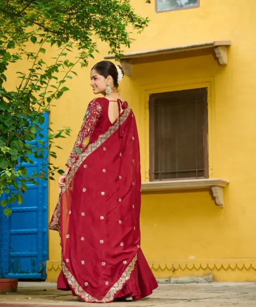 Dupatta: Vichitra Fabric with Zari Embroidery Work, Length 2.3