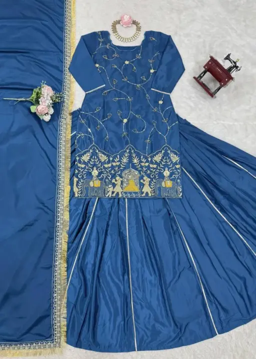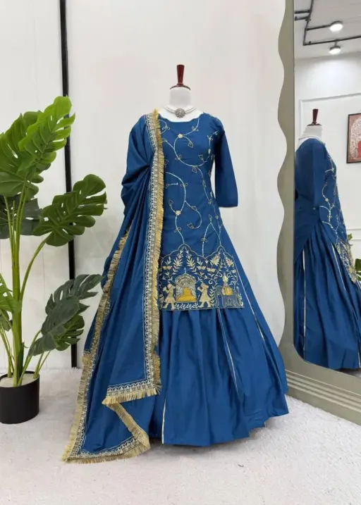 DupattaNatural Crepe silk thread with four side lace border 2.2-meter Length