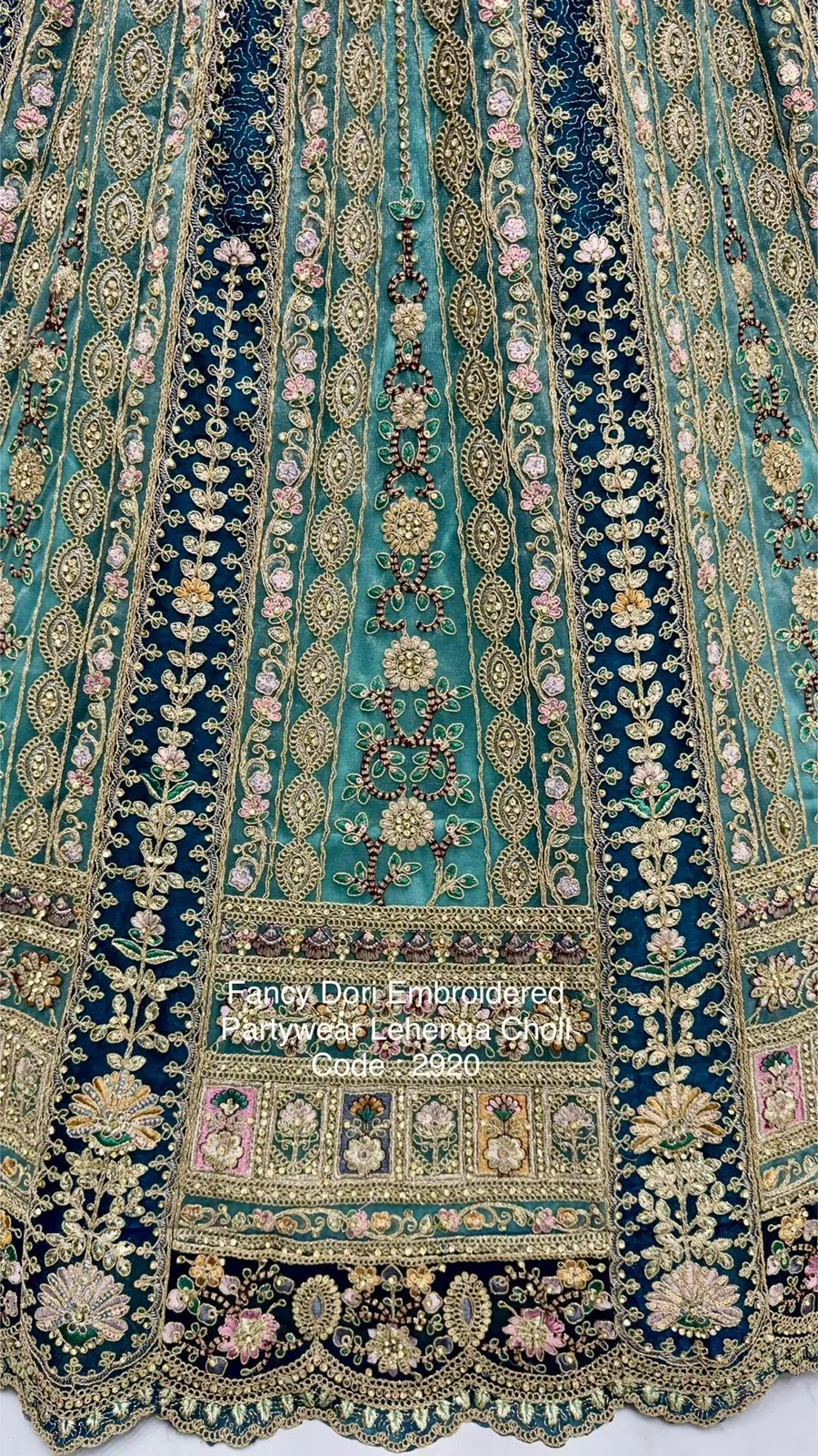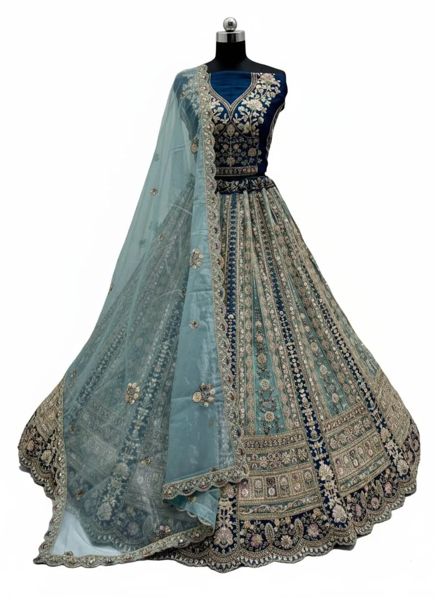 | Lehenga | Net with Dori Work, Multi Thread, Zari & Sequins Work, Diamond Work; Standard Cancan & Canvas Attached; Free Size Up To 42 |