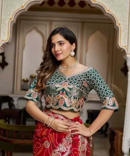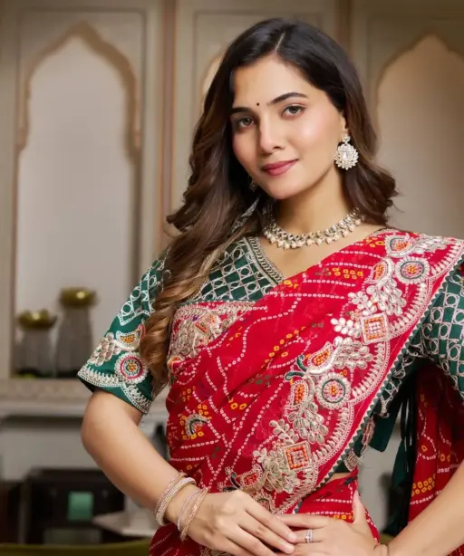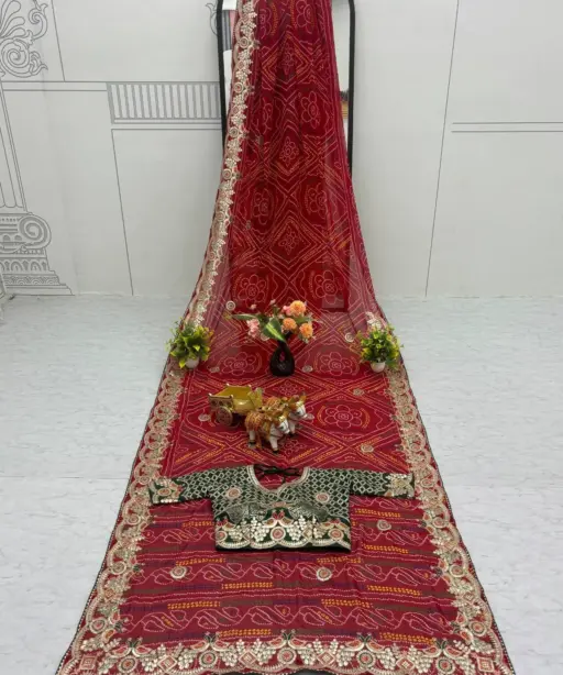 Sareepure bandhrej Heavy pitha & gota pati Work 5.50 mtr
