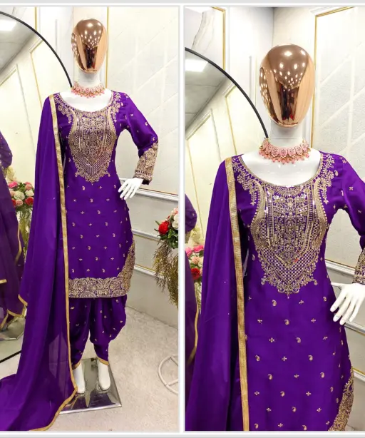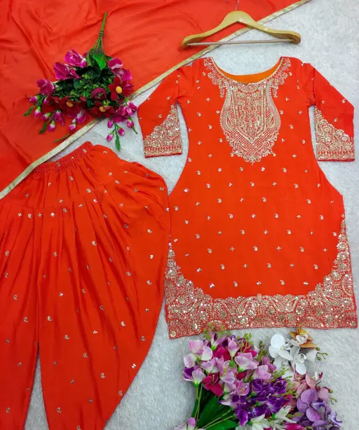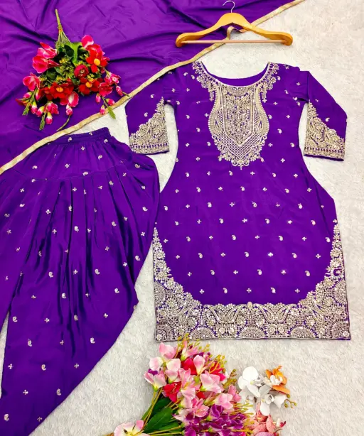 | Top | Pure Chinon Silk with Heavy Embroidery 5mm Sequence Work, Full Sleeves, Length 38-40, Inner Heavy Micro Cotton, Fully Stitched Ready to Wear |