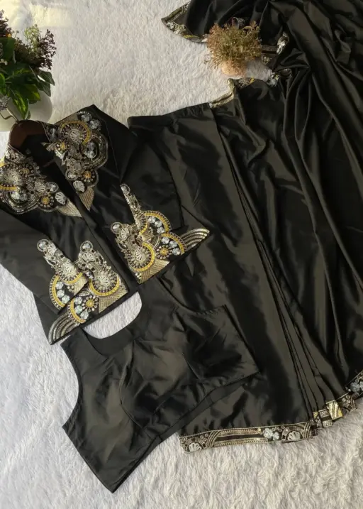 Catalog Name: Wedding Special Black Lehenga Saree with Jacket