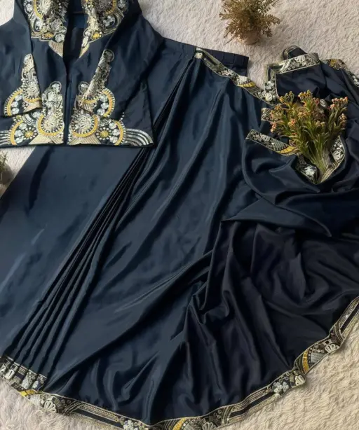 | Bottom | FRENCH CREAPE EMBROIDERY WORK 40”inch Length LAHENGA SAREE |