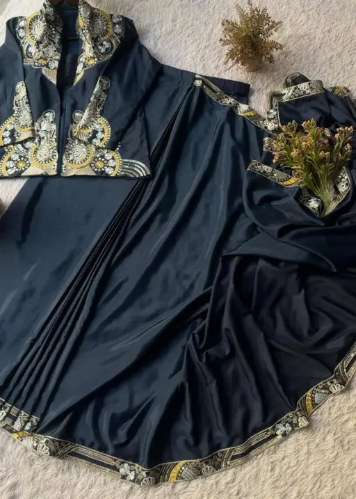 Wedding Special Blue Lehenga Saree with Jacket