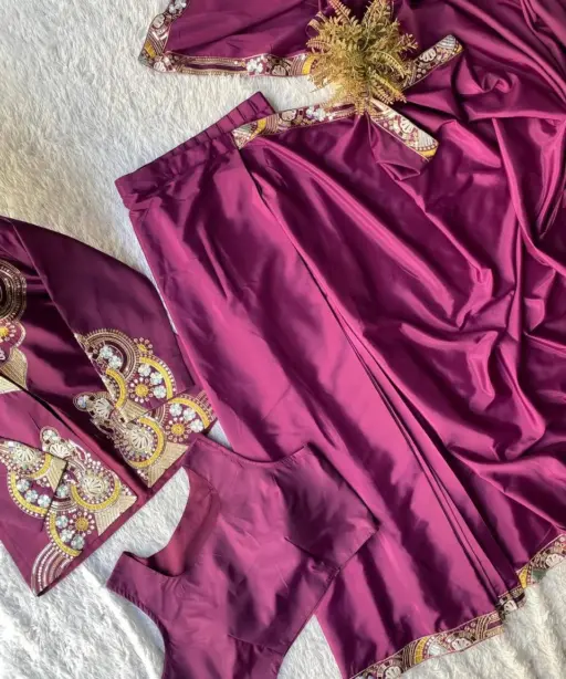 | Bottom | FRENCH CREAPE EMBROIDERY WORK 40”inch Length LAHENGA SAREE |