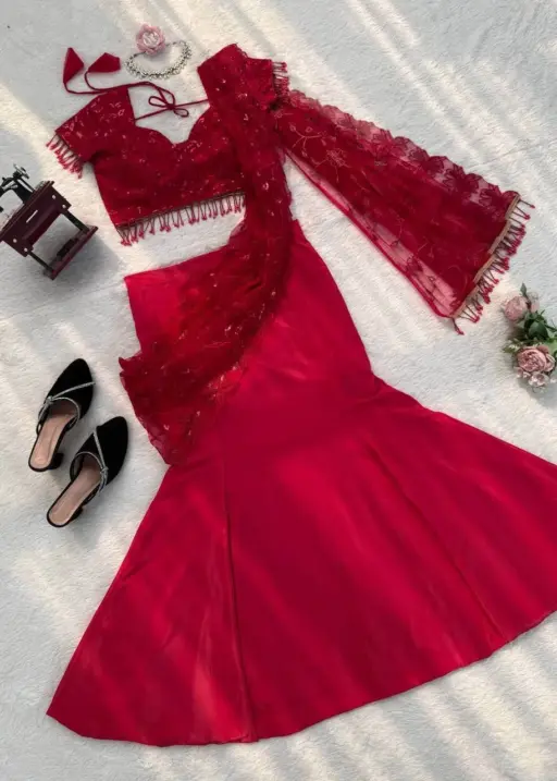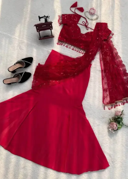 | Top | Natural crepe Thread with Sequence Ready to wear upto 42 with elastic with side zip with canvas |