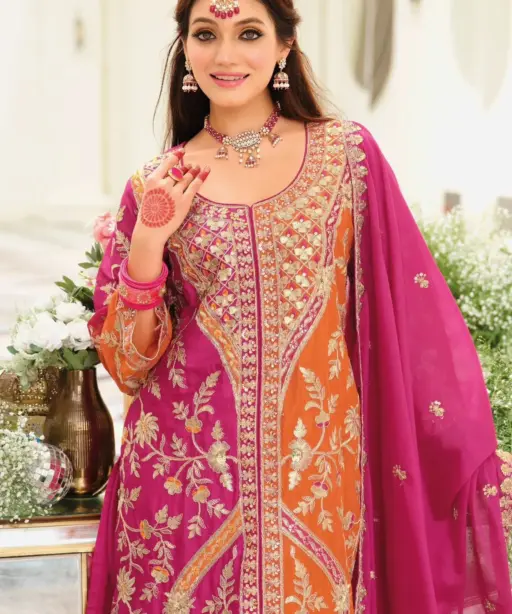 | Bottom | Heavy Chinon Plazo with Embroidery Work |