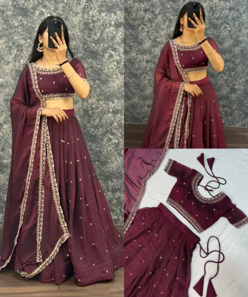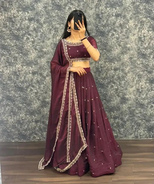 Lehenga: PRIMARY TISSUE SILK WITH EMBROIDERY SEQUENCE WORK Flair: 3 – 3.5 MTR