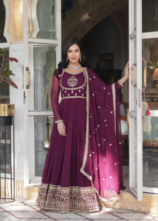 | Top | Faux Blooming Georgette with Rich Sequins Embroidered Work |