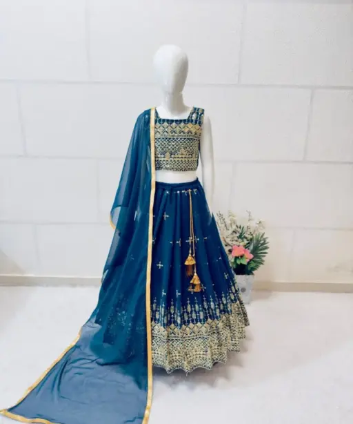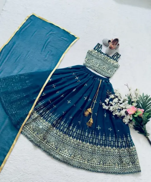 | Lehenga | Blooming Georgette with Beautiful Sequence Embroidery Work and Design, Inner Micro Cotton |
