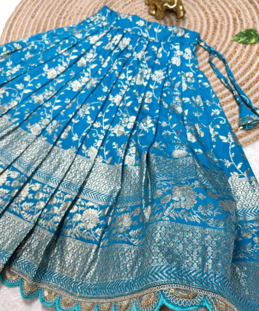 LehengaGolden Zari Silk with Dyeable / Embroidery Work; Lining/Inner: Micro-Cotton; Weight: 700g