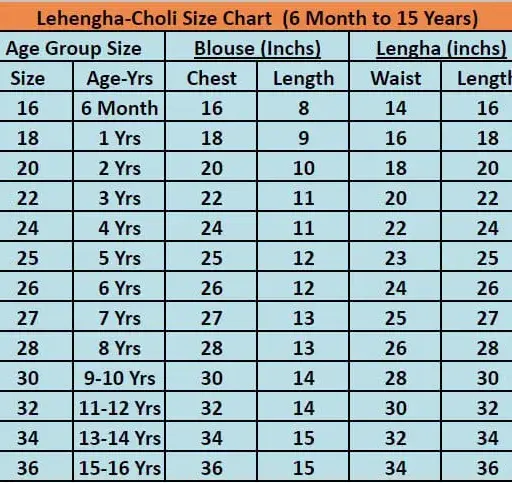 Size1 Yr – 15 Yrs (Refer to Size Chart)
